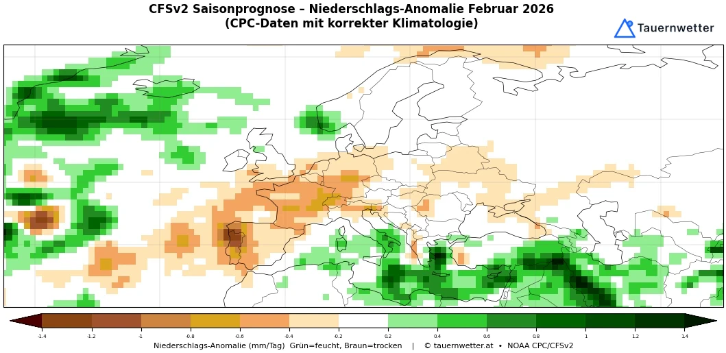 Die Langfristprognosen für Februar zeigen keine Trendwende – eher unterdurchschnittliche Niederschlagsmengen.