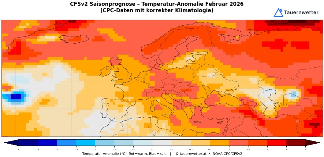 Die ersten Langfristprognosen für Februar zeigen überdurchschnittliche Temperaturen – also wieder zu mild. Sollte sich das bewahrheiten, würde der Gesamtwinter trotz des kalten Jänners leicht zu warm abschließen.