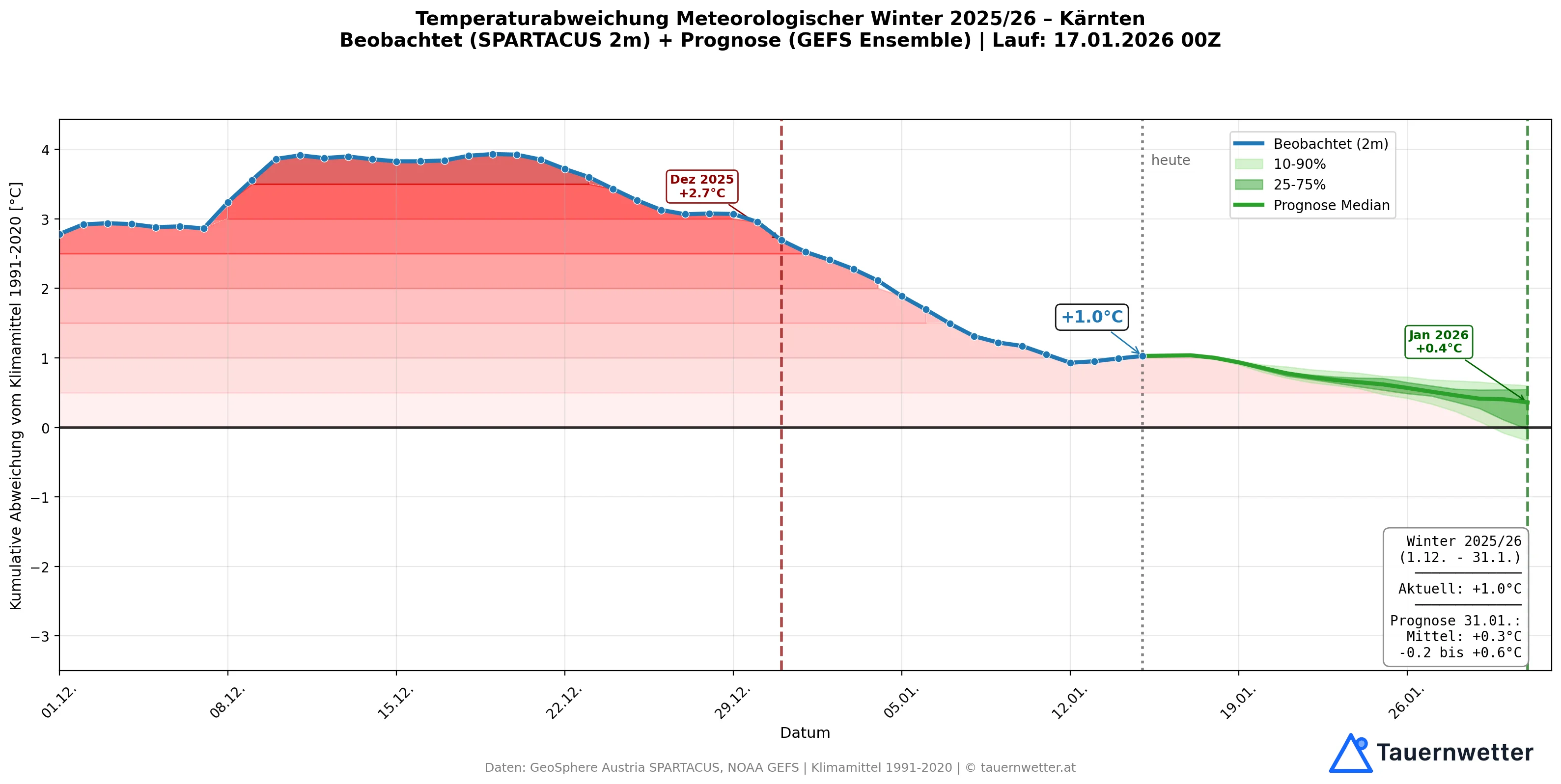 - Bilanz Dez + Jan bisher: +1,0°C