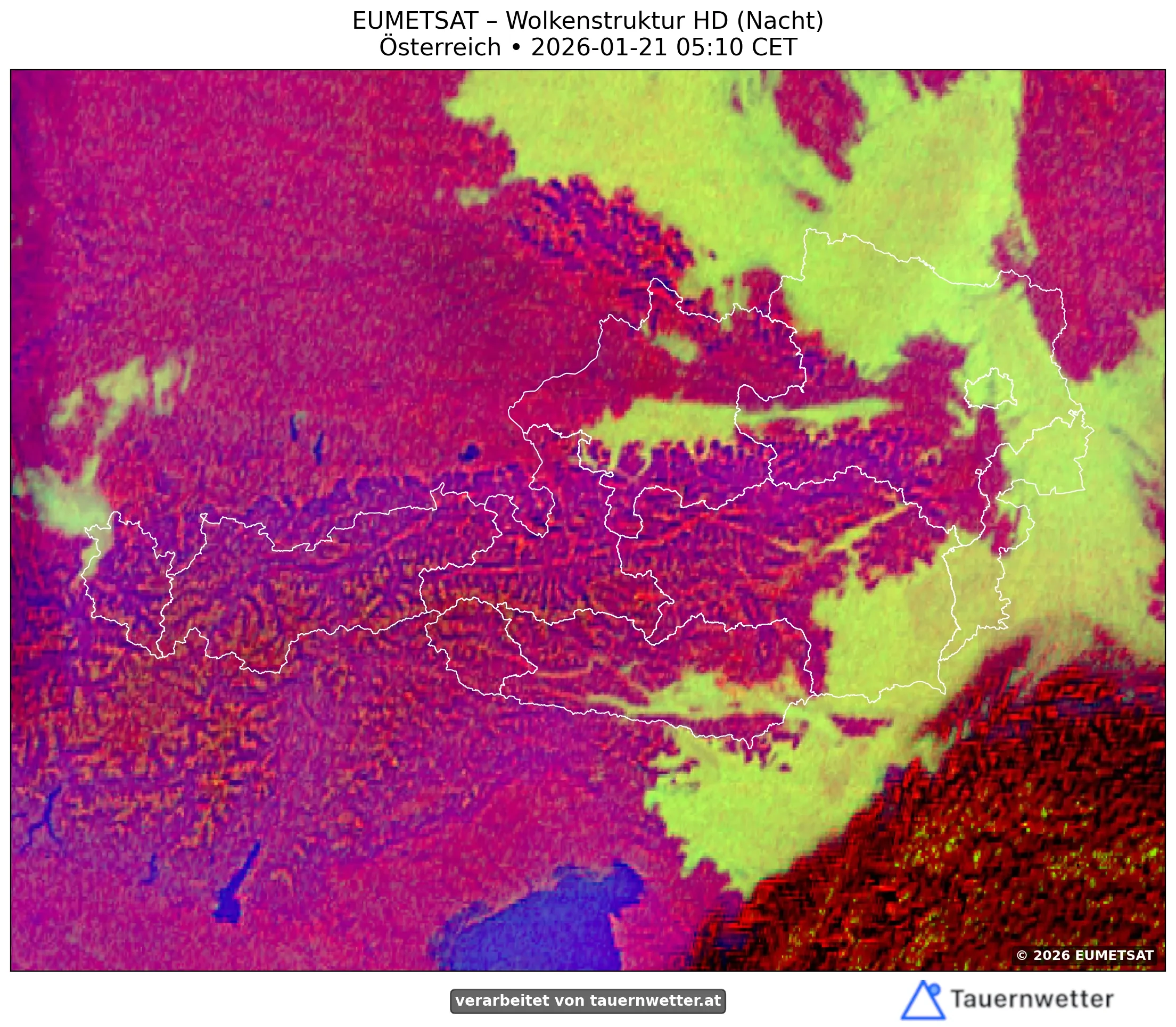 Im Gegensatz zu den vergangenen Tagen war der Nebel in der Nacht auf Mittwoch nur schwach ausgeprägt. Nennenswerte Nebelfelder bildeten sich lediglich rund um Villach und im Bereich des Wörthersees. In Klagenfurt selbst war es zeitweise klar – und genau das ermöglichte die starke nächtliche Auskühlung auf minus 12,5 Grad.